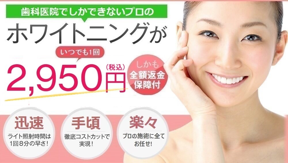初回施術時になんらかの不満がございましたら翌日までにコールセンター(0120-33-8469)までご連絡ください。 当該施術に対してお支払い頂いた料金全額をご来院医院受付にて返金させていただきます。 ※スタンダードホワイトニングのみ対象です。 ※ご不満の理由の如何に関わらず返金させて頂きます。 ※返金保証制度はスターホワイトニング表記医院において初診の方1回限りご利用可能です。